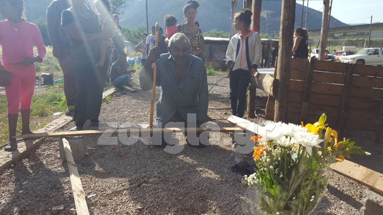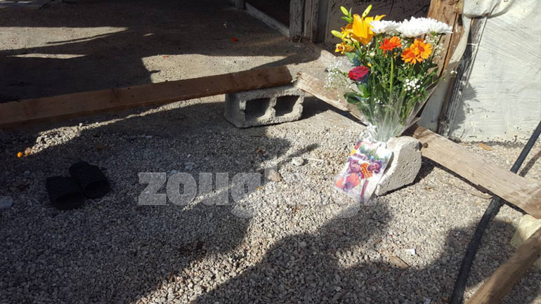 Στο σημείο αυτό οι κάτοικοι του καταυλισμού των Ρομά έχουν τοποθετήσει λουλούδια.