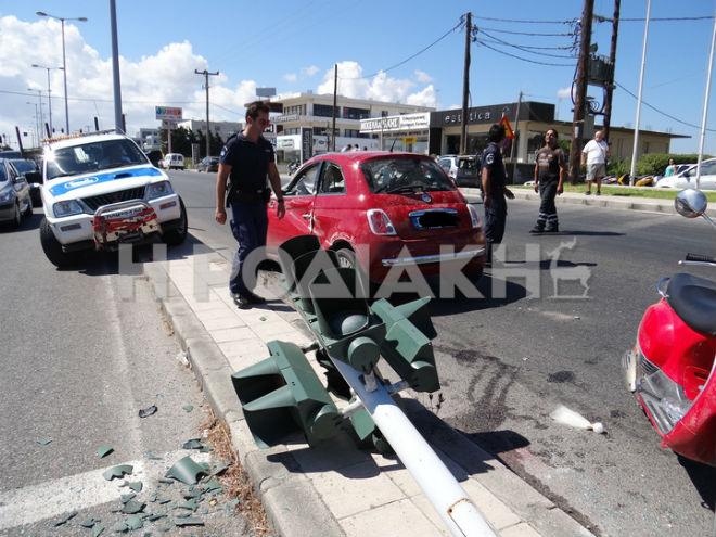 Σύμφωνα με τις πρώτες πληροφορίες, στο αυτοκίνητο επέβαινε μια μητέρα οδηγός με δύο παιδιά και ενώ κινούνταν με κατεύθυνση από Φαληράκι προς Ρόδο, ένα άλλο αυτοκίνητο της έκλεισε το δρόμο, με αποτέλεσμα να ανέβει στο πεζοδρόμιο, να προσκρούσει στον φωτεινό σηματοδότη και στη συνέχεια να ανατραπεί το Ι.Χ.