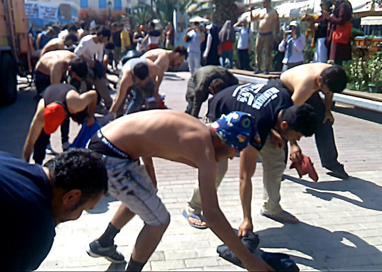 Οι διαδηλωτές αρνήθηκαν αρχικά να αποχωρήσουν ενώ προθυμοποιήθηκαν να καθαρίσουν με τα ρούχα τους. Μάλιστα έβγαλαν τις μπλούζες τους και άρχισαν να σκουπίζουν την πλατεία με αυτές. Τελικά πείσθηκαν να αποχωρήσουν από τον κυρίως χώρο της πλατείας προκειμένου να πραγματοποιηθούν οι απαραίτητες εργασίες υπό τα συνεχή συνθήματα των διαδηλωτών για ελευθερία και ανθρώπινα δικαιώματα.