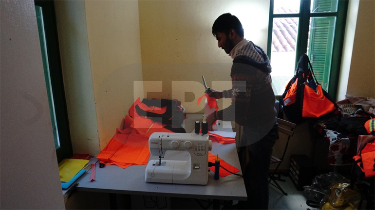 «Κάθε τσάντα απαιτεί περίπου τρεις ώρες για να φτιαχτεί. Όλα γίνονται όπως και στις κανονικές τσάντες, με τη διαφορά πως τα υλικά είναι από τα σωσίβια που βρίσκουμε στις παραλίες. Όλα τα μέρη του σωσιβίου χρησιμοποιούνται. Το ύφασμα και οι ιμάντες γίνονται τσάντες. Ενώ το εσωτερικό υλικό το χρησιμοποιούμε για στρώματα τα οποία είναι απαραίτητα αυτήν την εποχή για το κρύο» είπε στην ΕΡΤ ο Aida Simply, πρόσφυγας από το Αφγανιστάν.