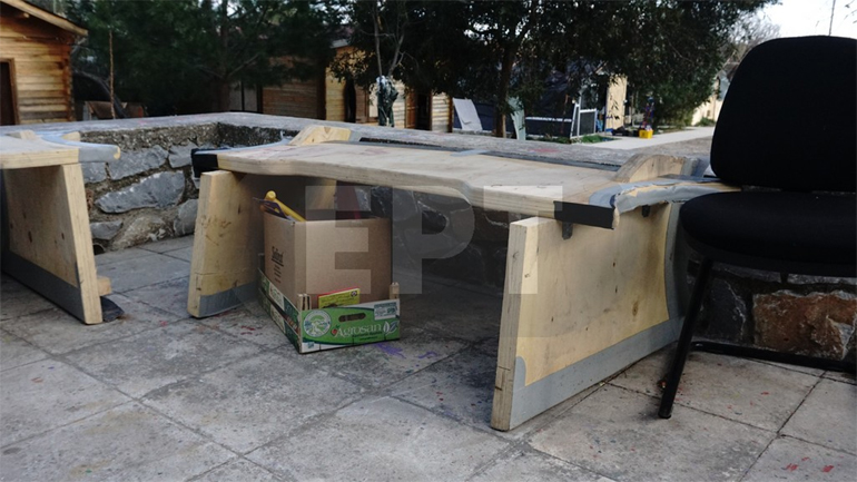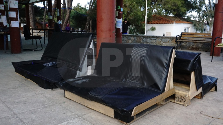 Με ένα πρόχειρο εργαστήριο και πολλή συλλογική δουλειά, μετατρέπουν τα υλικά των σωσιβίων αλλά και των πλαστικών βαρκών σε χρηστικά αντικείμενα. Όπως καναπέδες, μικρά τραπεζάκια, στρώματα αλλά και πρωτότυπες τσάντες. Το αποτέλεσμα εντυπωσιακό. Τα μέχρι την επεξεργασία τους «σκουπίδια» παίρνουν νέα μορφή και δίνουν τη δυνατότητα της απασχόλησης στους πρόσφυγες. Από τους εθελοντές ήδη εξετάζεται η δυνατότητα κάποιες από τις κατασκευές να διατίθενται προς πώληση, με στόχο βέβαια την οικονομική ενίσχυση των προσφύγων.