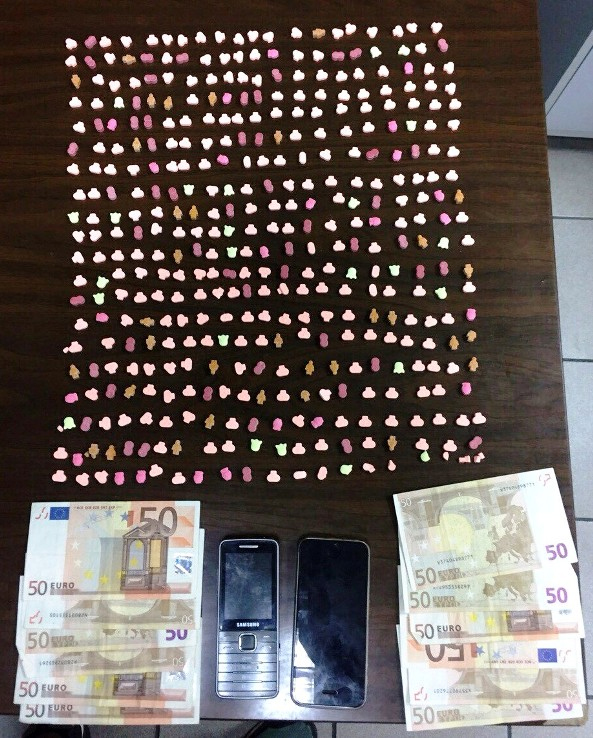 Συνολικά, κατασχέθηκαν τα 400 ναρκωτικά δισκία, το χρηματικό ποσό των 600 ευρώ και δύο κινητά τηλέφωνα.