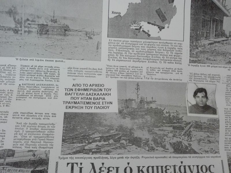 Ο Γιάννης Φωκάς, κάτοικος Σούδας θυμάται ότι όταν έγινε η έκρηξη βρισκόνταν σε ελάχιστη απόσταση από το πλοίο και σώθηκε σαν από θαύμα.