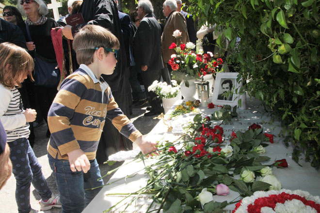 Ένα μαγιάτικο στεφάνι και κόκκινα γαρύφαλλα ήταν μερικά από αυτά που άφησαν στον τάφο του.