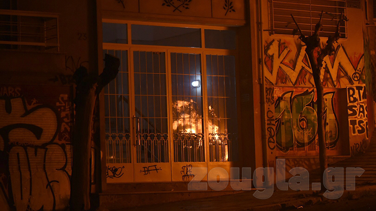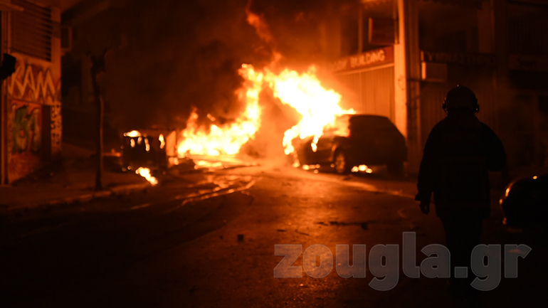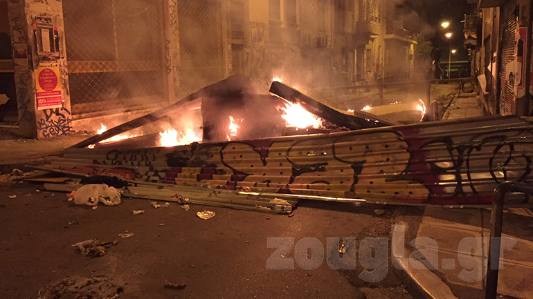 Τα άτομα αυτά έστησαν οδοφράγματα με κάδους απορριμμάτων, έβαλαν φωτιές, ενώ έως τώρα έχουν καεί τρία αυτοκίνητα, που ήταν σταθμευμένα στις οδούς Μπουμπουλίνας, Στουρνάρη και Τοσίτσα. Επίσης, έχουν προκληθεί ζημιές σε εισόδους πολυκατοικιών και προσόψεις καταστημάτων.