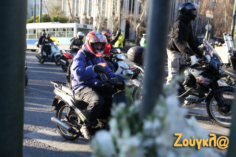 Μοτοπορεία στο κέντρο της Αθήνας έκαναν διανομείς με αφορμή το τροχαίο που έγινε την προηγούμενη εβδομάδα έξω από τη Βουλή και το σημείο στο οποίο έχασε τη ζωή του την περασμένη Παρασκευή ο 23χρονος Ιάσονας.