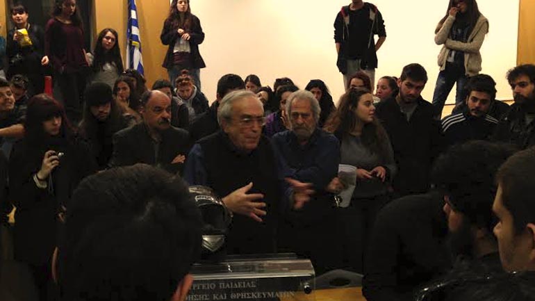 Ο υπουργός άκουσε τα αιτήματά τους και συζήτησε φιλικά μαζί τους για ένα ημίωρο. Επανέλαβε δε τη δέσμευση του υπουργείου να συμπεριλάβει και στο νέο προετοιμαζόμενο πολυνομοσχέδιο τις ρυθμίσεις για κατάργηση κάθε νομοθετική πράξη που οδηγεί σε διαγραφή φοιτητών και στην κατάργηση των Συμβουλίων Ιδρυμάτων στα ΑΕΙ και ΤΕΕ.
