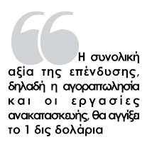 Όπως αναφέρουν οι πληροφορίες, η συνολική αξία της επένδυσης, δηλαδή η αγοραπωλησία και οι εργασίες ανακατασκευής, θα αγγίξει το 1 δις δολάρια.