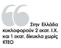 Αυτήν τη στιγμή στην Ελλάδα υπολογίζεται ότι κυκλοφορούν περί τα 2 εκατ. οχήματα και 1 εκατ. δίκυκλα που δεν έχουν περάσει ΚΤΕΟ, ενώ σε 730.000 ανέρχονται τα ανασφάλιστα.