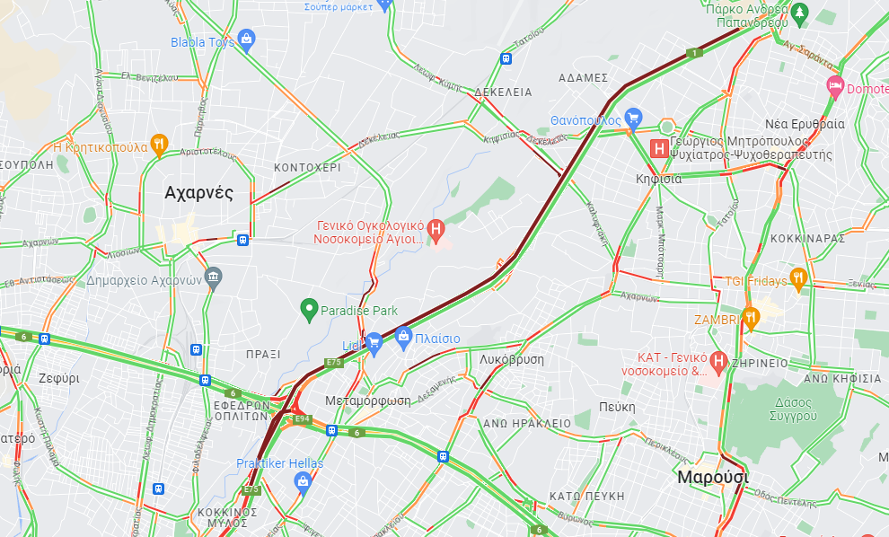 Αιτία, ένα τροχαίο ατύχημα που έχει συμβεί στο ύψος της γέφυρας της Νέας Φιλαδέλφειας, το οποίο σε συνδυασμό με την έτσι κι αλλιώς αυξημένη ροή των οχημάτων, προκάλεσε το κυκλοφοριακό «έμφραγμα».