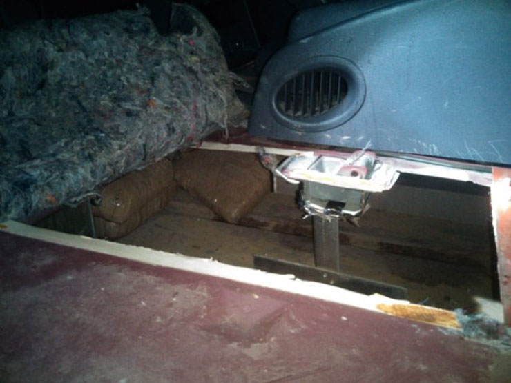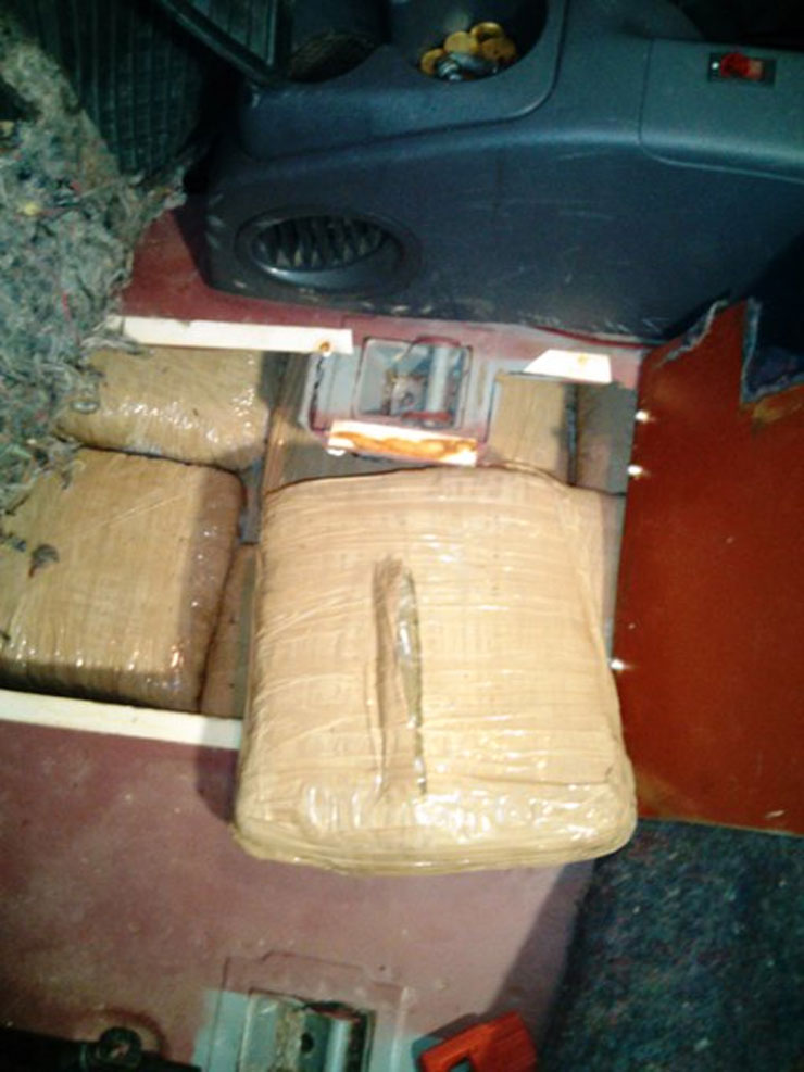Έπειτα από έρευνα στο όχημα, με τη συνδρομή αστυνομικών σκύλων, βρέθηκαν και κατασχέθηκαν, σε ειδικά διαμορφωμένη κρύπτη, κάτω από τα καθίσματα, 46 δέματα με κάνναβη, συνολικού βάρους 49.626 γραμμαρίων.