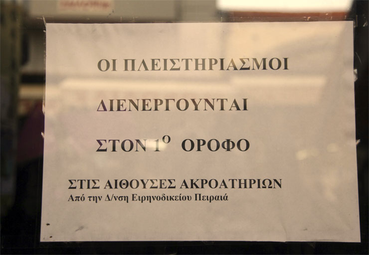 Με το σύνθημα «Όχι άλλοι άστεγοι στον Πειραιά!», η «Κίνηση ενάντια στους πλειστηριασμούς» διοργάνωσε το μεσημέρι της Τετάρτης συγκέντρωση διαμαρτυρίας έξω από το Ειρηνοδικείο Πειραιά, στην οδό Νικήτα 12, με σκοπό να μην προχωρήσουν δυο πλειστηριασμοί κατοικιών από τράπεζα. Στη συγκεκριμένη δράση συμμετείχε και η κίνηση «Αλληλεγγύη Πειραιά».