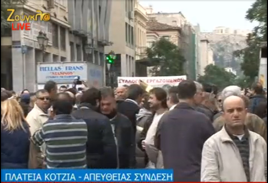 Στη συνέχεια μετέβησαν έξω από το υπουργείο, όπου και παρέμειναν για αρκετή ώρα με αποτέλεσμα η οδός Βασιλίσσης Σοφίας να παραμείνει κλειστή. Οι εργαζόμενοι αποχώρησαν και ο δρόμος δόθηκε και πάλι στην κυκλοφορία.