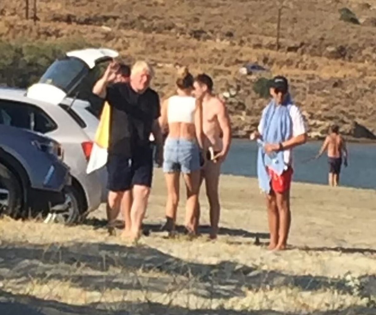 Σύμφωνα με την Daily Mail που δημοσιεύει τις φωτογραφίες, ο Μπόρις Τζόνσον έφτασε στην παραλία με τη σύζυγό τους και τη συνοδεία τους περίπου στις 6 το απόγευμα της Τετάρτης.