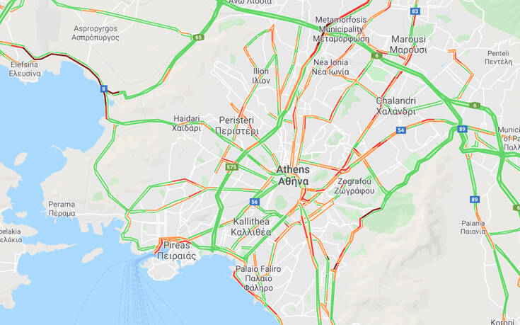 Προβλήματα σημειώθηκαν και στην εθνική οδό Αθηνών – Λαμίας, στο ρεύμα καθόδου προς Πειραιά, στο ύψος της Μεταμόρφωσης.