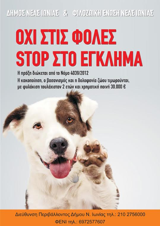 Σας γνωρίζουμε ότι η θανάτωση των ζώων με φόλες είναι αξιόποινη πράξη, δηλαδή έγκλημα το οποίο διώκεται ποινικά.