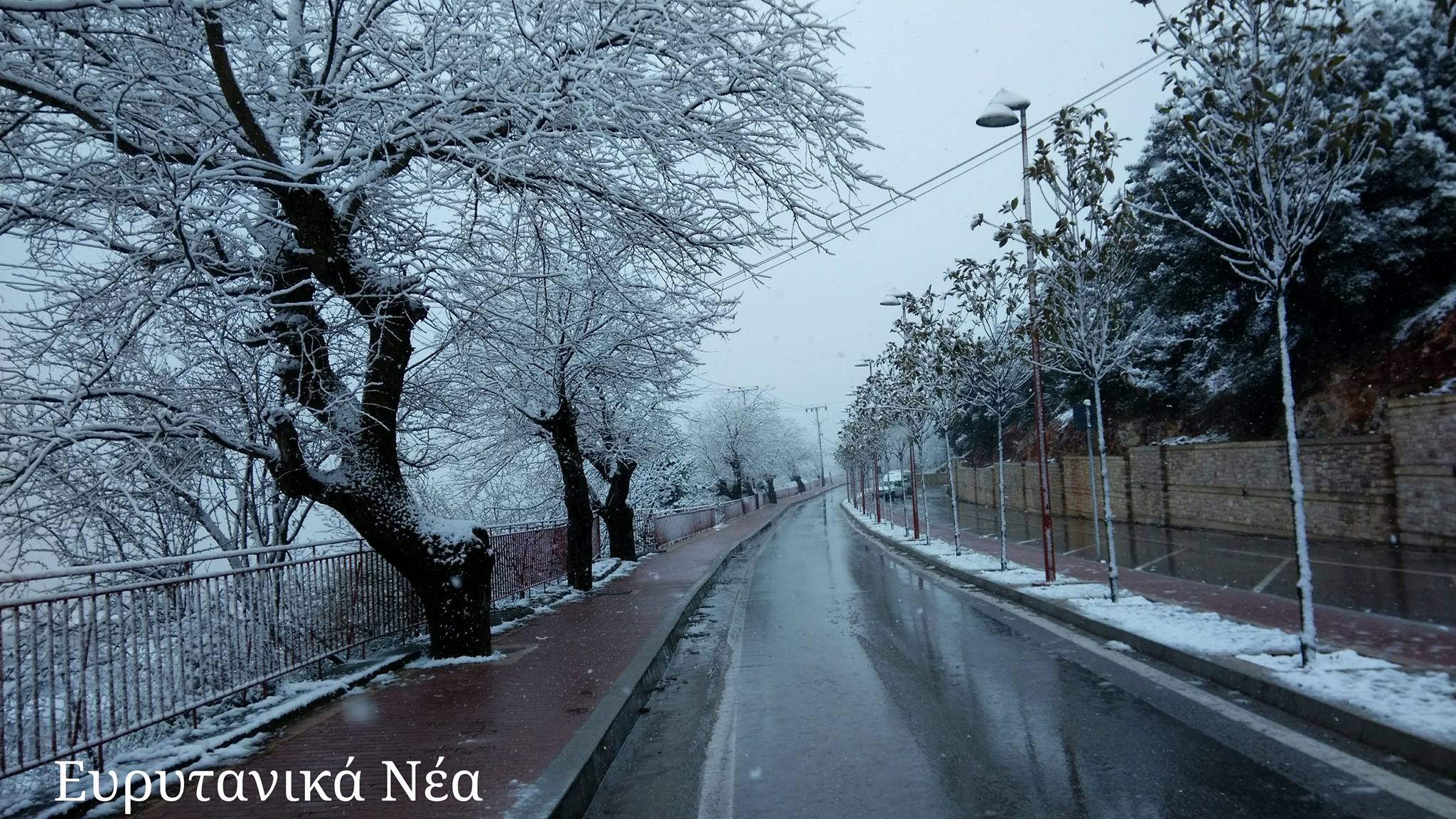 Ντυμένη στα λευκά βρήκε το πρώτο φως της ημέρας τη Δομνίστα Ευρυτανίας και περιοχές της Ορεινής Ναυπακτίας.