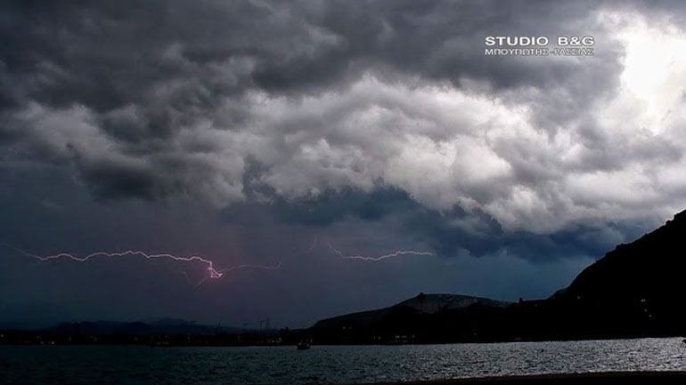 Σφοδρή καταιγίδα έπληξε το απόγευμα της Πέμπτης την Αργολίδα συνοδευόμενη από πολλές αστραπές.