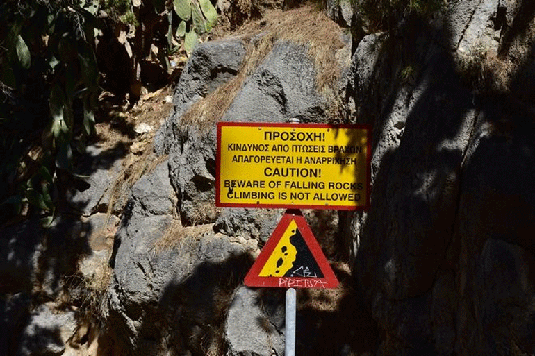 Η υπηρεσία πολιτικής προστασίας του Δήμου Ναυπλίου είχε αποκλείσει τις εισόδους του πεζόδρομου έχοντας βάλει προειδοποιητικές πινακίδες κινδύνου και κάγκελα.