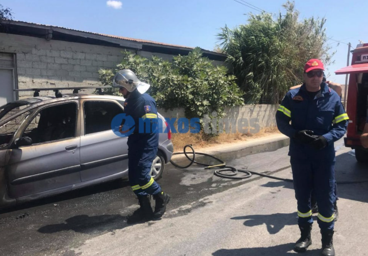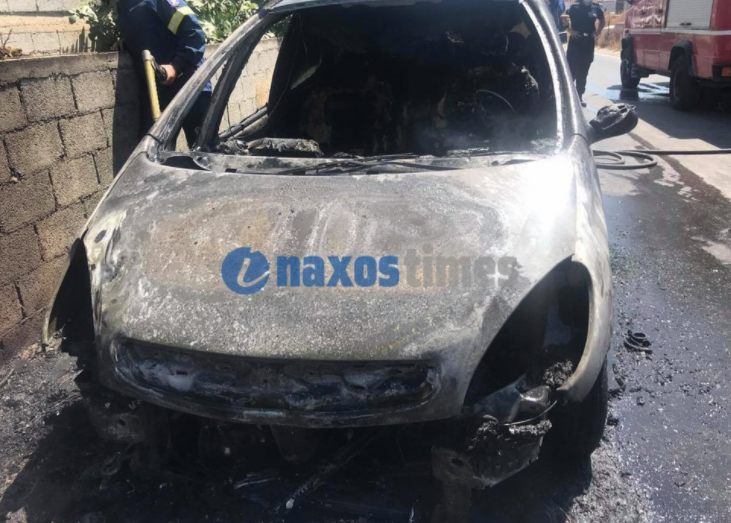 Φωτιά ξέσπασε σε ΙΧ αυτοκίνητο εν κινήσει, το οποίο κάηκε ολοσχερώς στην περιοχή Άσπρα Σπίτια της Νάξου.