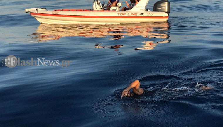 Οι καιρικές συνθήκες στην περιοχή είναι καλές, υπάρχει μόνο ελαφρύς κυματισμός, ενώ ο τολμηρός κολυμβητής περίπου ανά μία ώρα κάνει μικρές στάσεις στην προσπάθειά του.