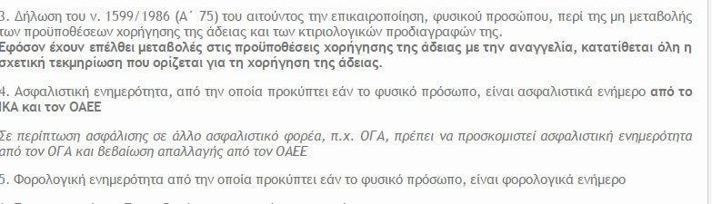 Το zougla.gr φυσικά και διασταύρωσε την καταγγελία του αναγνώστη μας, και όπως μπορείτε να δείτε και εσείς πιο κάτω (μέσα από την σελίδα του ΕΟΠΠΕΠ) μια νέα προϋπόθεση πλέον είναι και η ασφαλιστική ενημερότητα.