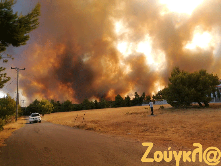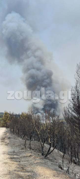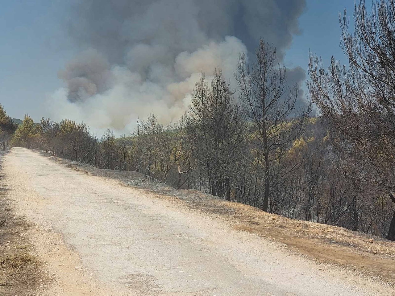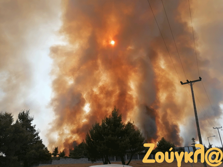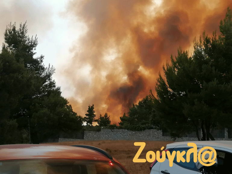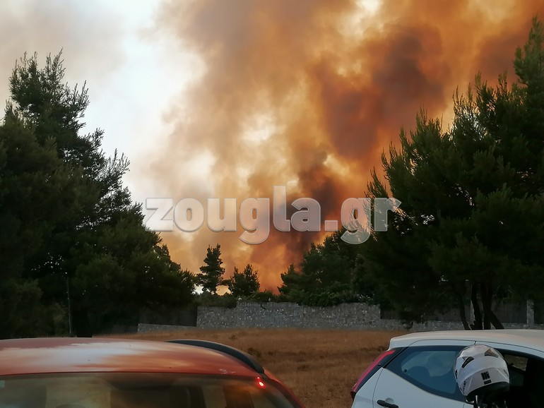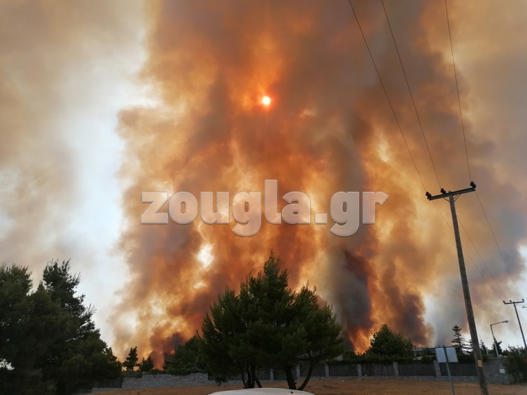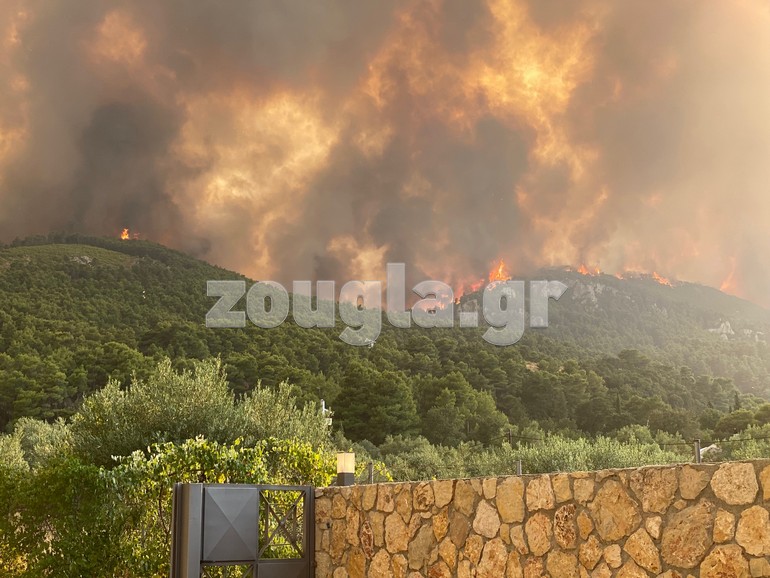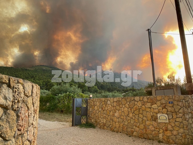 Το μέτωπο βρίσκεται σε απόσταση περίπου έξι χιλιομέτρων από το Καπανδρίτι με τις επίγειες δυνάμεις της πυροσβεστικής να καταβάλλουν υπεράνθρωπη προσπάθεια για να το περιορίσουν.