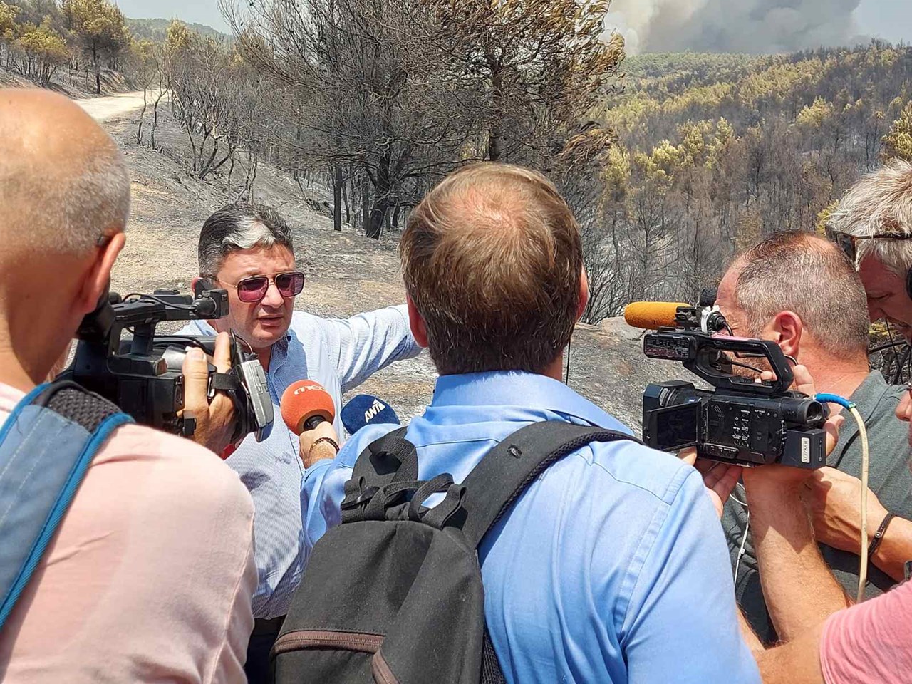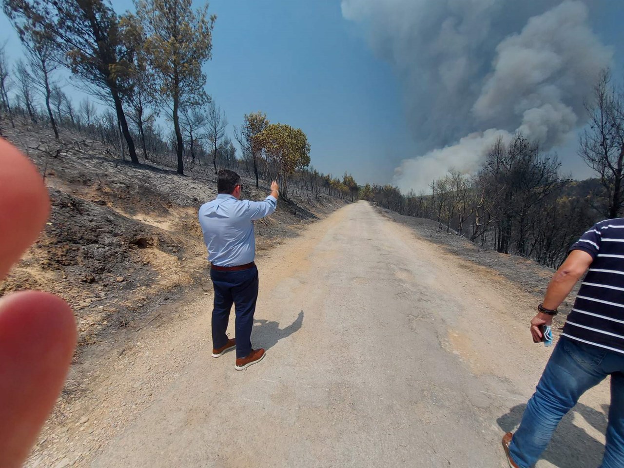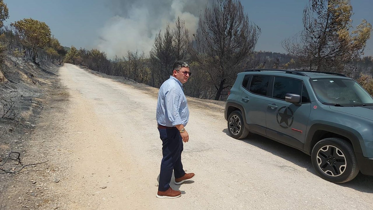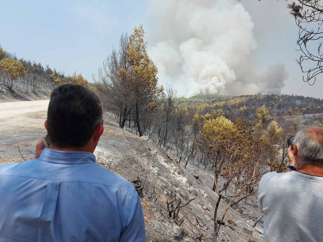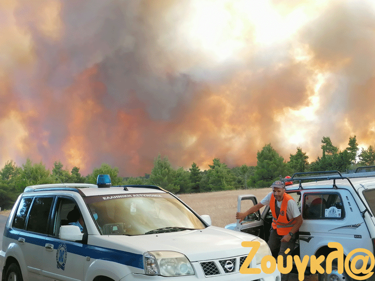 Το μέτωπο βρίσκεται σε απόσταση περίπου έξι χιλιομέτρων από το Καπανδρίτι με τις επίγειες δυνάμεις της πυροσβεστικής να καταβάλλουν υπεράνθρωπη προσπάθεια για να το περιορίσουν.