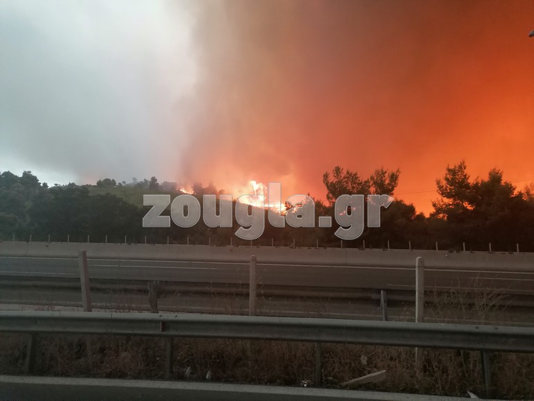 Η φωτιά είχε φτάσει περίπου στις 8 στα διόδια, ελάχιστα μέτρα και από το βενζινάδικο που βρίσκεται εκεί και τα ελικόπτερα της πυροσβεστικής έκαναν ρίψεις νερού για να προλάβουν το ενδεχόμενο ενός τρομερού ατυχήματος.
