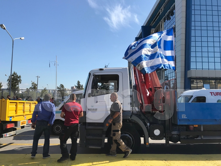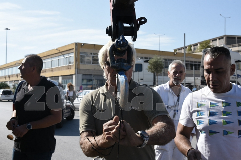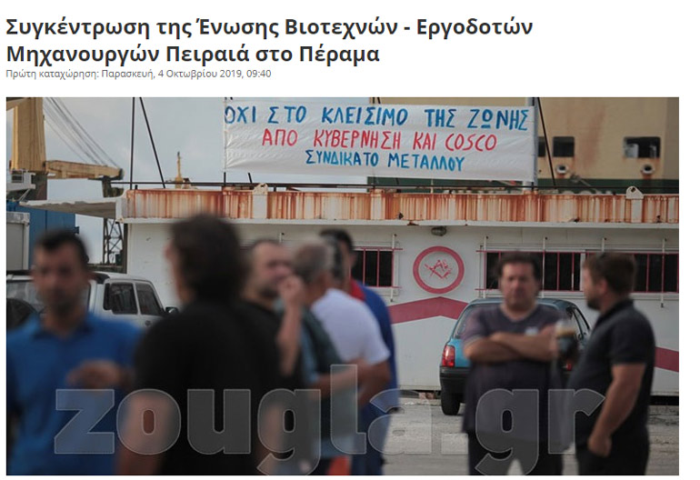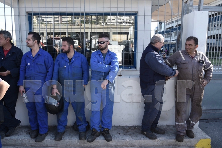 Στη διαμαρτυρία συμμετέχει και ο Σύνδεσμος Ναυπηγοεπισκευαστών καθώς και μέλη του συνδικάτου Μετάλλου.