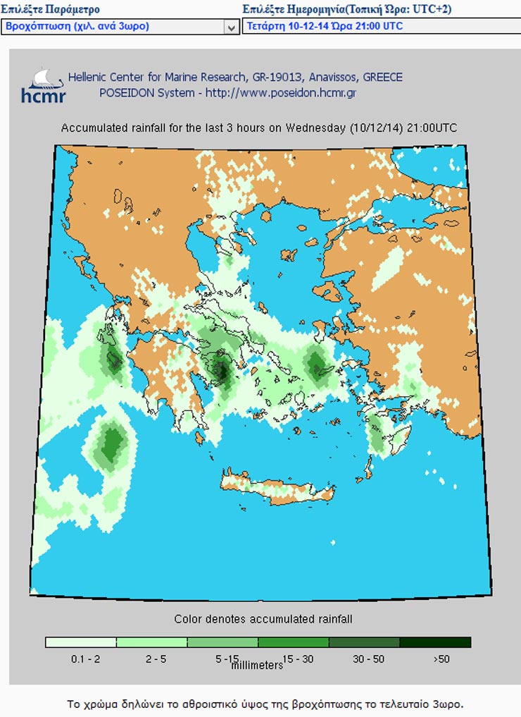 Δείτε την πρόγνωση του συστήματος Ποσειδών για τις περιοχές της χώρας που θα πλήξουν οι βροχοπτώσεις τις βραδινές ώρες της Τετάρτης: