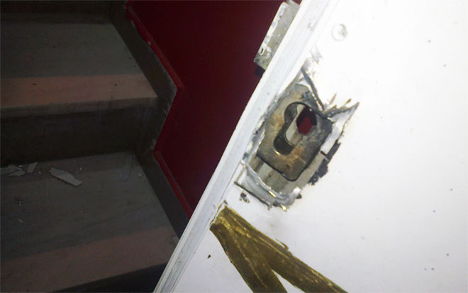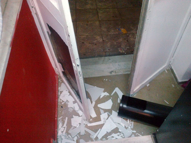 Σε λίγο φωτογραφίες από την διάρρηξη στα γραφεία της Τ.Ο. Περάματος. Οι αστυνομικοί της ασφάλειας κατέστρεψαν με τροχό την είσοδο των γραφείων.