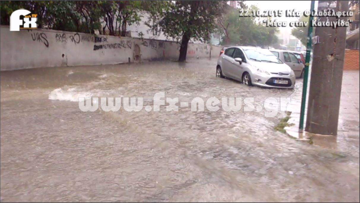 Καταστροφές στη Νέα Φιλαδέλφεια προκάλεσε η έντονη νεροποντή που έπληξε το λεκανοπέδιο την Πέμπτη.