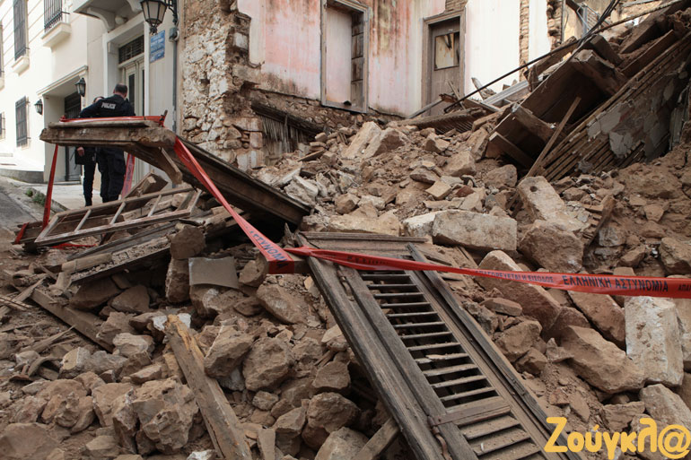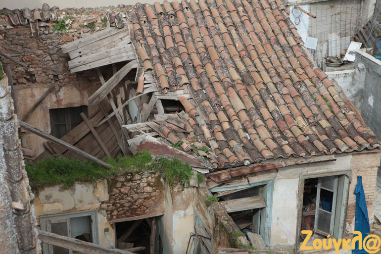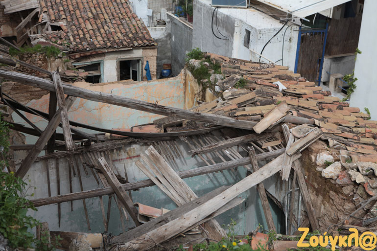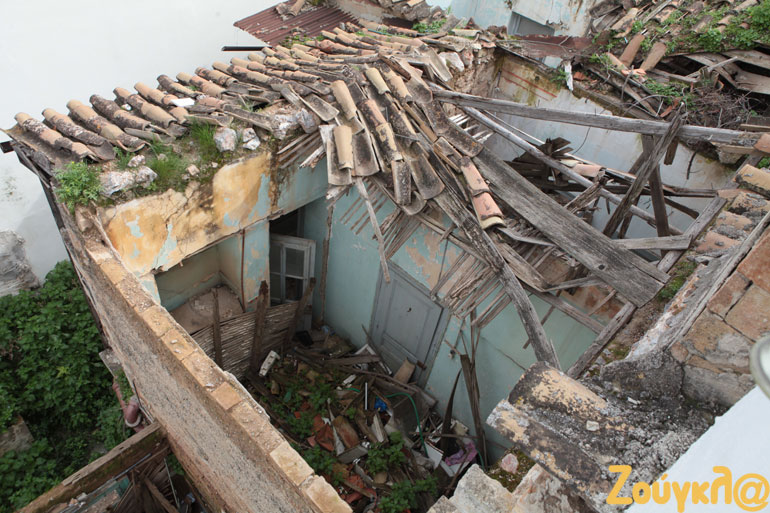 Ωστόσο, δεν είναι το μοναδικό κτήριο που έχει καταρρεύσει στη γειτονιά. Όπως θα δείτε στις φωτογραφίες του zougla.gr, προ πενταετίας είχε σημειωθεί ακόμη μία κατάρρευση στέγης σε σπίτι που βρίσκεται δύο νούμερα πιο δίπλα.