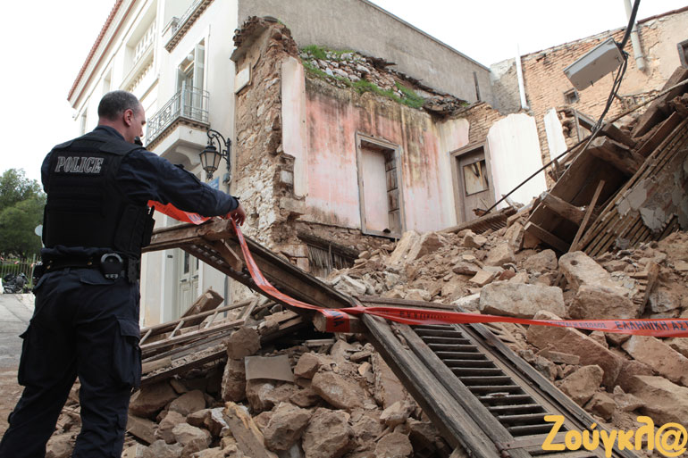 Σκηνές τρόμου εκτυλίχθηκαν το πρωί της Τρίτης στην Πνύκα, όταν κατέρρευσε ένα παλιό κτήριο.