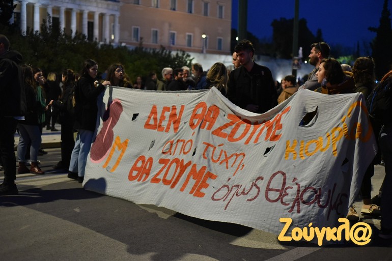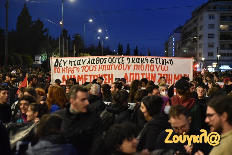 Νέα συγκέντρωση διαμαρτυρίας για την τραγωδία στα Τέμπη πραγματοποιήθηκε το βράδυ της Πέμπτης από συλλογικότητες και αριστερές οργανώσεις.