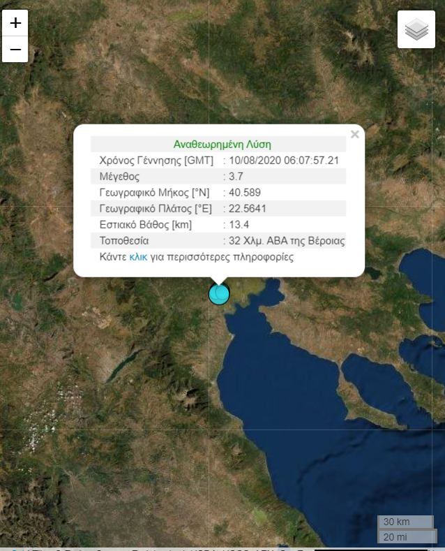 Συγκεκριμένα, ο σεισμός εντοπίζεται 32 χλμ. ΑΒΑ της Βέροιας, ενώ το εστιακό βάθος είναι 13,4 χλμ, σύμφωνα με το Γεωδυναμικό Ινστιτούτο του Εθνικού Αστεροσκοπείου Αθηνών.