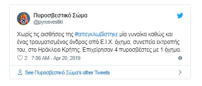 Η επιχείρηση απεγκλωβισμού διήρκεσε μία περίπου ώρα ενώ από τα συντρίμμια του οχήματος ανασύρθηκε νεκρή η 20χρονη συνοδηγός και βαριά τραυματισμένος ο επίσης 20χρονος οδηγός. Ο νεαρός άνδρας μεταφέρθηκε με το ασθενοφόρο στο Βενιζέλειο Νοσοκομείο Ηρακλείου.