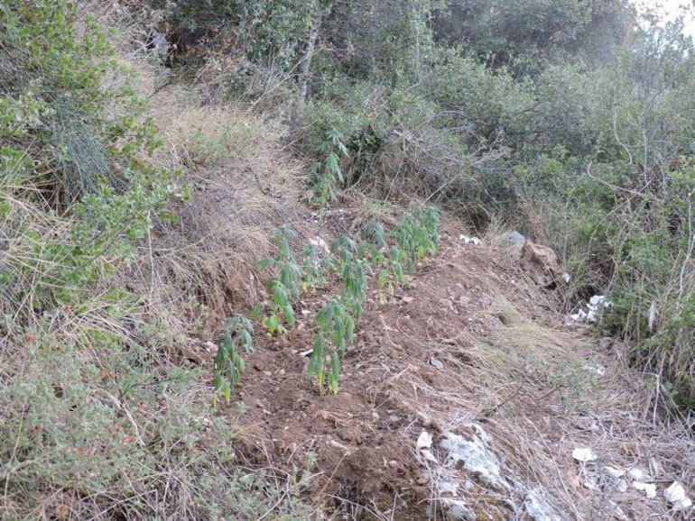 Οι επίδοξοι καλλιεργητές είχαν φτιάξει έναν ειδικά διαμορφωμένο – εκχερσωμένο χώρο που είχε τρία επιμέρους επίπεδα, ανάμεσα σε αυτοφυή βλάστηση, όπου καλλιεργούνταν τα δενδρύλλια κάνναβης.