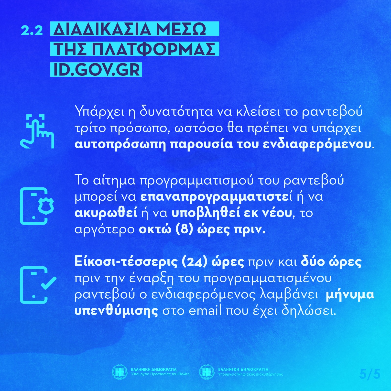 Ανοίγει αύριο Δευτέρα 25 Σεπτεμβρίου η πλατφόρμα για τον προγραμματισμό των ραντεβού των πολιτών για την έκδοση νέου τύπου Δελτίου Ταυτότητας ή αντικατάσταση των παλαιών στον διαδικτυακό ιστότοπο id.gov.gr.