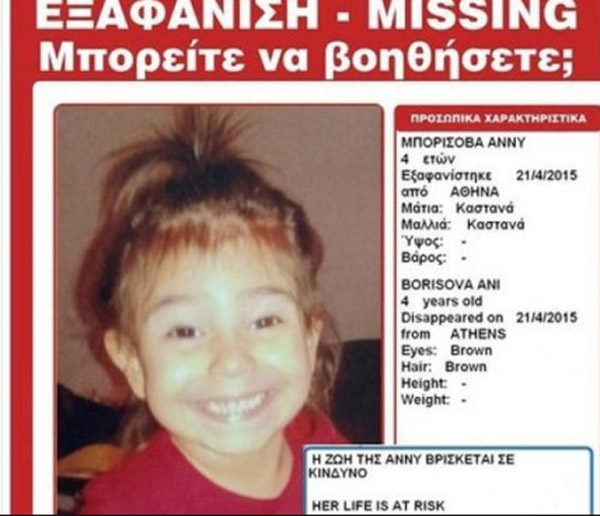 Προς εξιχνίαση βαίνει η υπόθεση εξαφάνισης της 4χρονης Άννυ Mπορίσοβα από τη Βουλγαρία. Σύμφωνα με πληροφορίες από την ΕΛ.ΑΣ., η ανήλικη φέρεται να έχει δολοφονηθεί από τον βιολογικό της πατέρα.