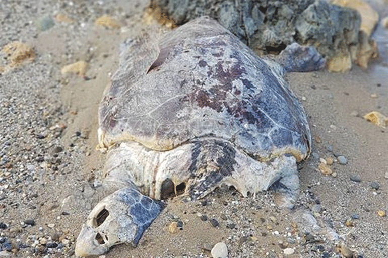 Νεκρή εντοπίστηκε, το πρωί του Σαββάτου, σε παραλία των Χανίων και συγκεκριμένα στην παραλία της Απτέρας, μια τεράστια χελώνα καρέτα-καρέτα.