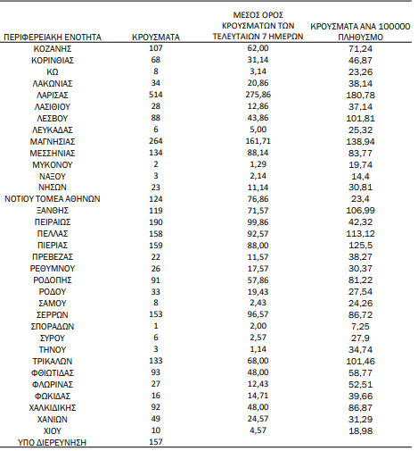 Η γεωγραφική κατανομή των περιστατικών είναι η ακόλουθη:
