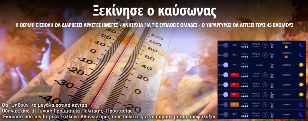 Την ίδια ώρα το Εθνικό Αστεροσκοπείο Αθηνών προβλέπει θερμοκρασίες που θα αγγίξουν τους 45 βαθμούς σε κάποιες πόλεις της χώρας.