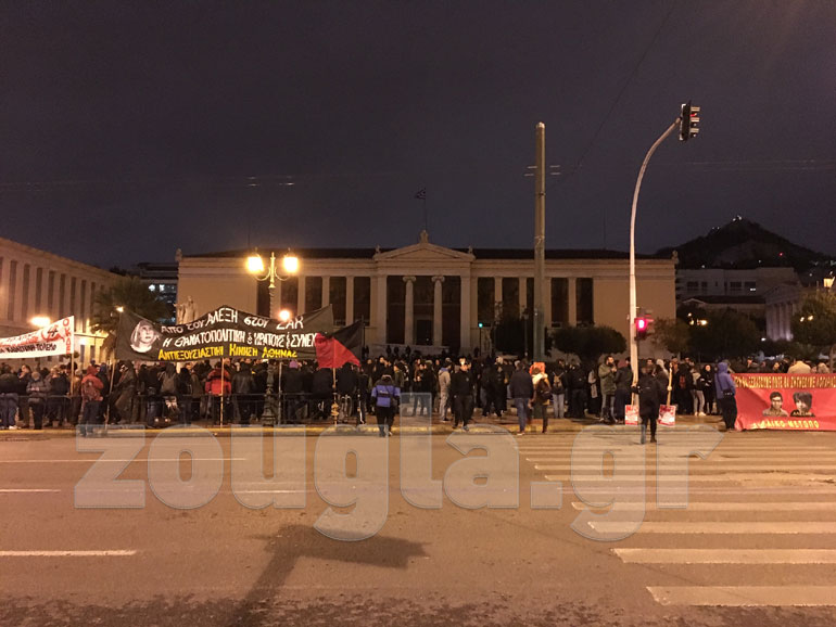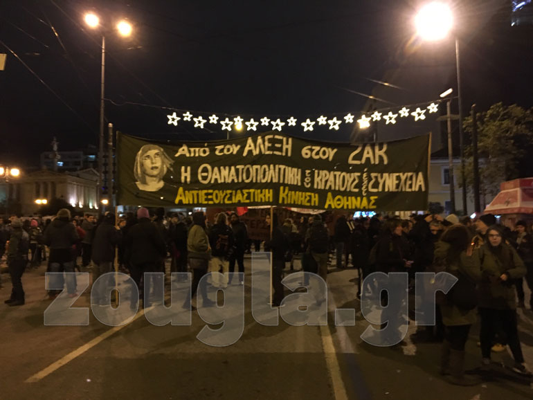 Με κεντρικό σύνθημα «Κουμής, Κανελλοπούλου, Μιχάλης Καλτεζάς, Αλέξης Γρηγορόπουλος, αυτή είναι η ΕΛ.ΑΣ», οργανώσεις της εξωκοινοβουλευτικής Αριστεράς και συλλογικότητες του αντιεξουσιαστικού χώρου συγκεντρώθηκαν αρχικά στα Προπύλαια και στη συνέχεια κατευθύνθηκαν στη Βουλή.