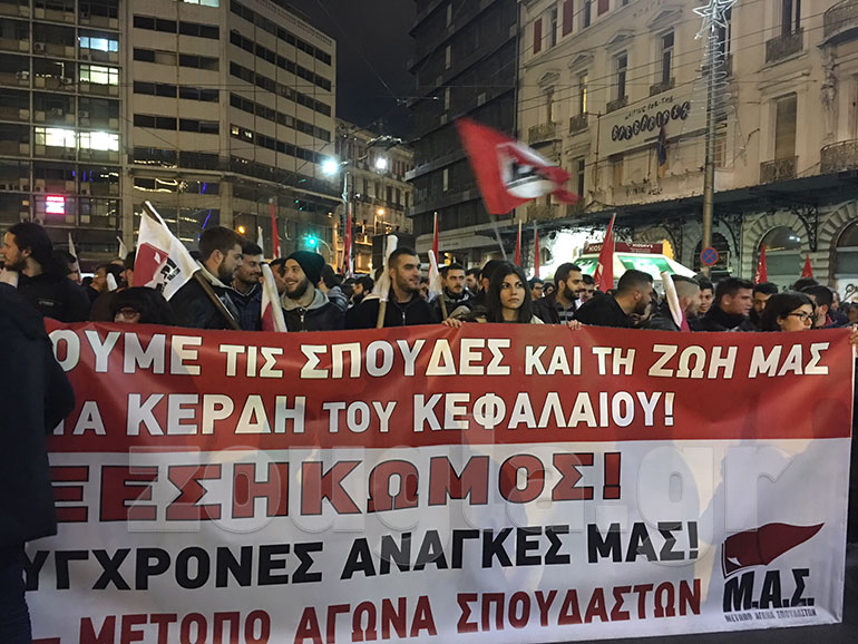 Στη συνέχεια πέταξαν κάποιες φωτοβολίδες και πέτρες με αποτέλεσμα οι αστυνομικές δυνάμεις να τους απωθήσουν.