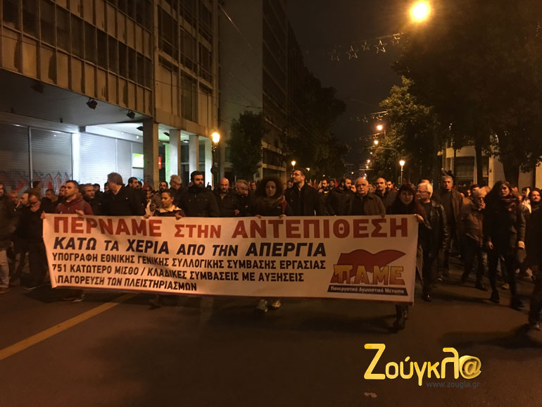 Το ΠΑΜΕ κάλεσε εργαζόμενους, άνεργους και συνταξιούχους στο μεγάλο συλλαλητήριο στις 18:00 στην Ομόνοια, ενώ στη συνέχεια πραγματοποιήθηκε πορεία προς τη Βουλή. Από την πλευρά της η ΓΣΕΕ πραγματοποίησε συγκέντρωση στο Σύνταγμα.