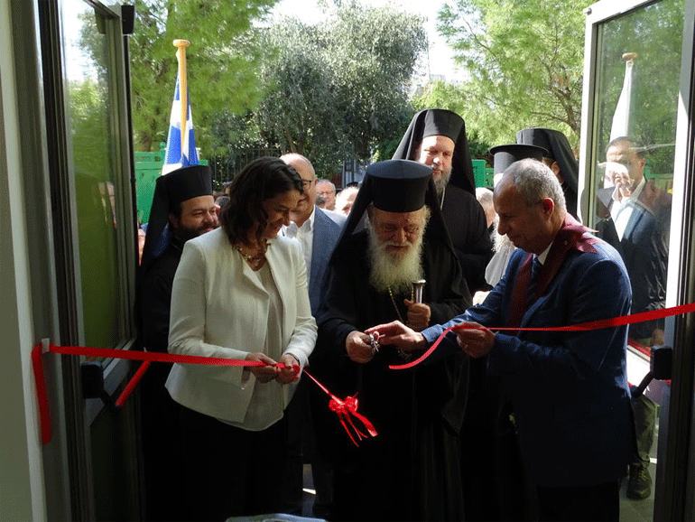 Ακολούθως, ο Σεβασμιώτατος Μητροπολίτης κ. Γαβριήλ ξενάγησε τον Μακαριώτατο και την Υπουργό Παιδείας στις αίθουσες του νέου χώρου.