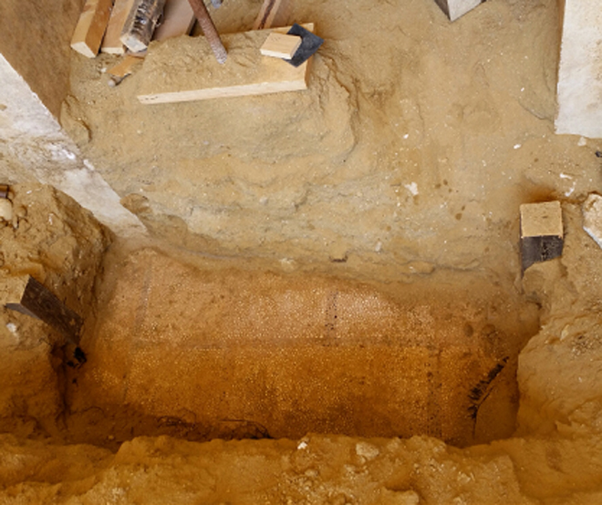 Στο κέντρο και μπροστά από την είσοδο, αποκαλύπτεται βοτσαλωτό δάπεδο, που αποτελείται από ορθογώνια και τετράγωνα σχήματα, πλαισιωμένα από ασπρόμαυρους ρόμβους. Στο κάτω μέρος της πρόσοψης εμφανίζεται στη νωπογραφία ταινία, μπλε χρώματος, η οποία παρακολουθείται και στους πλευρικούς τοίχους. Συνεχίζεται η αφαίρεση των χωμάτων από τον προθάλαμο, σε πλάτος δυο μέτρων περίπου, από τον τοίχο της εισόδου. Ο εσωτερικός χώρος, καλύπτεται ακόμη από όγκο χωμάτων, ο οποίος θα αφαιρείται, με ιδιαίτερη προσοχή, στις επόμενες μέρες. Επίσης, πραγματοποιούνται, συστηματικά, εργασίες συντήρησης και στερέωσης τόσο της πρόσοψης του μνημείου, όσο και του εσωτερικού του αποκαλυπτόμενου χώρου.