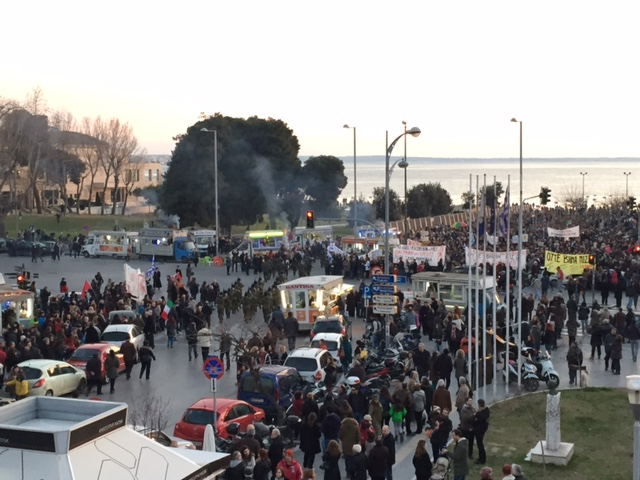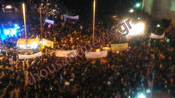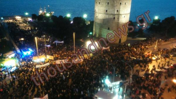 Μεγαλειώδης διαδήλωση βρίσκεται σε εξέλιξη στη Θεσσαλονίκη, όπως και σε άλλες μεγάλες πόλεις της Ελλάδας, καθώς κόσμος παραμένει συγκεντρωμένος στο κέντρο της συμπρωτεύουσας προκειμένου να εκφράσει τη συμπαράστασή του στην ελληνική κυβέρνηση κατά τις διαπραγματεύσεις της με τους Ευρωπαίους εταίρους.
